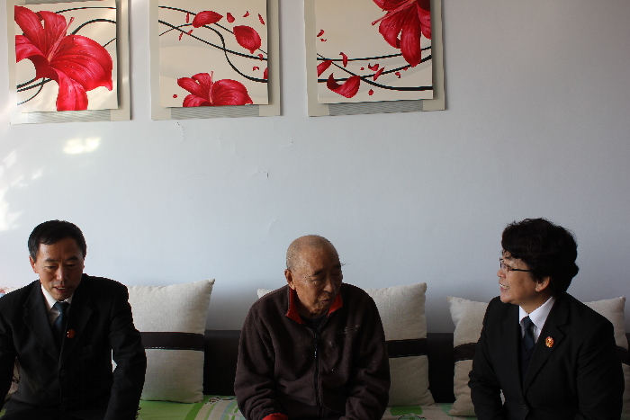 在第65个国庆节来临之际,政治处张莉主任、于文革主任代表全院干警走访慰问新中国成立前参加革命工作的老干部、老党员,已退休的副院长李长新同志,向其表示亲切的慰问和节日的祝福。