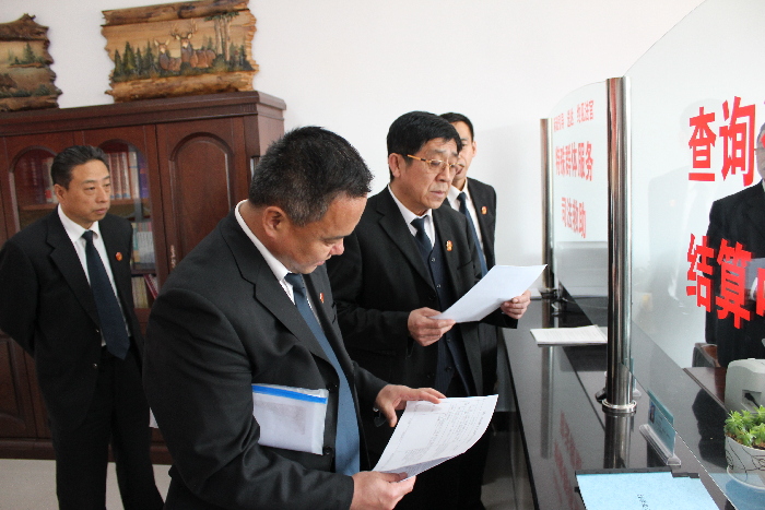 检查组参观了基层法院的诉讼服务中心大厅,在立案登记窗口,中院领导亲自查看了为落实立案登记制改革工作,重新制定的立案诉讼材料收据、诚实承诺书、送达地址确认书、接收、退回起诉状登记、来访登记、口头起诉笔录、一次性告知书等一系列文书格式样本。在观看和听取了基层法院的立案改革具体工作情况后,中院领导对基层工作给予了肯定,对五一期间加班制定文书样本工作的立案庭同志进行了表扬。