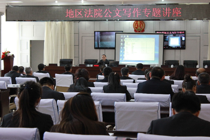 大兴安岭地区中级人民法院按照省院要求的“从正确使用标点符号做起,大力提升司法文书制作水平,努力将每一份司法文书都打造成精品”的工作任务要求,4月15日下午大兴安岭中级人民法院邀请地区职业学院教务处副处长何际海同志来到中院,为全区法院干警上了一堂公文写作和标点符号使用专题讲座,以进一步提高全区法院干警的公文写作水平,提升履行职责的能力,推动全区法院工作规范化管理。