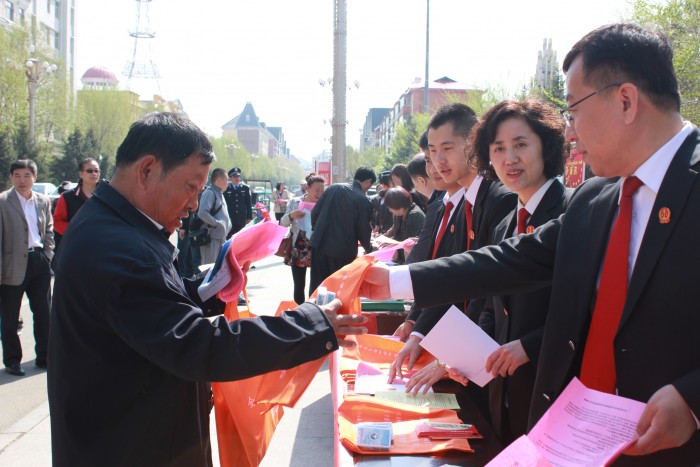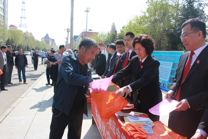5月18日上午,全区“平安兴安建设”集中宣传活动在加区新世纪广场举行,大兴安岭地区中级人民法院参加了宣传活动。中院党组副书记、常务副院长王丽梅,党组成员、政治部主任张龙出席活动。