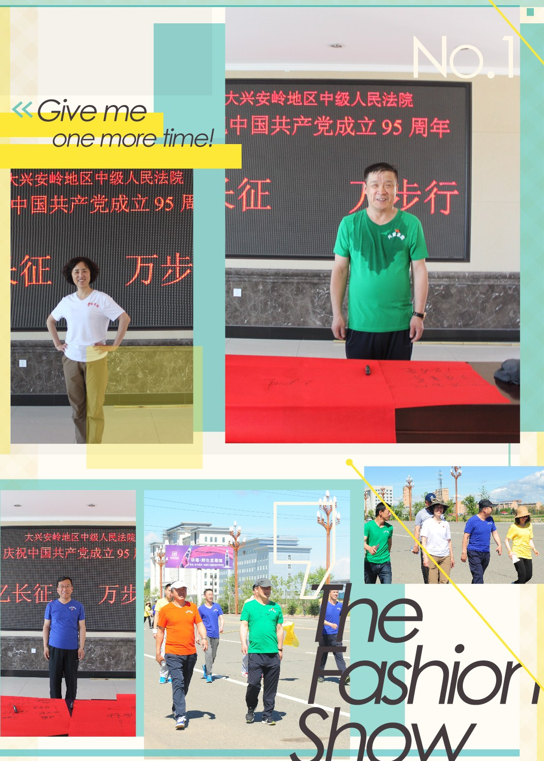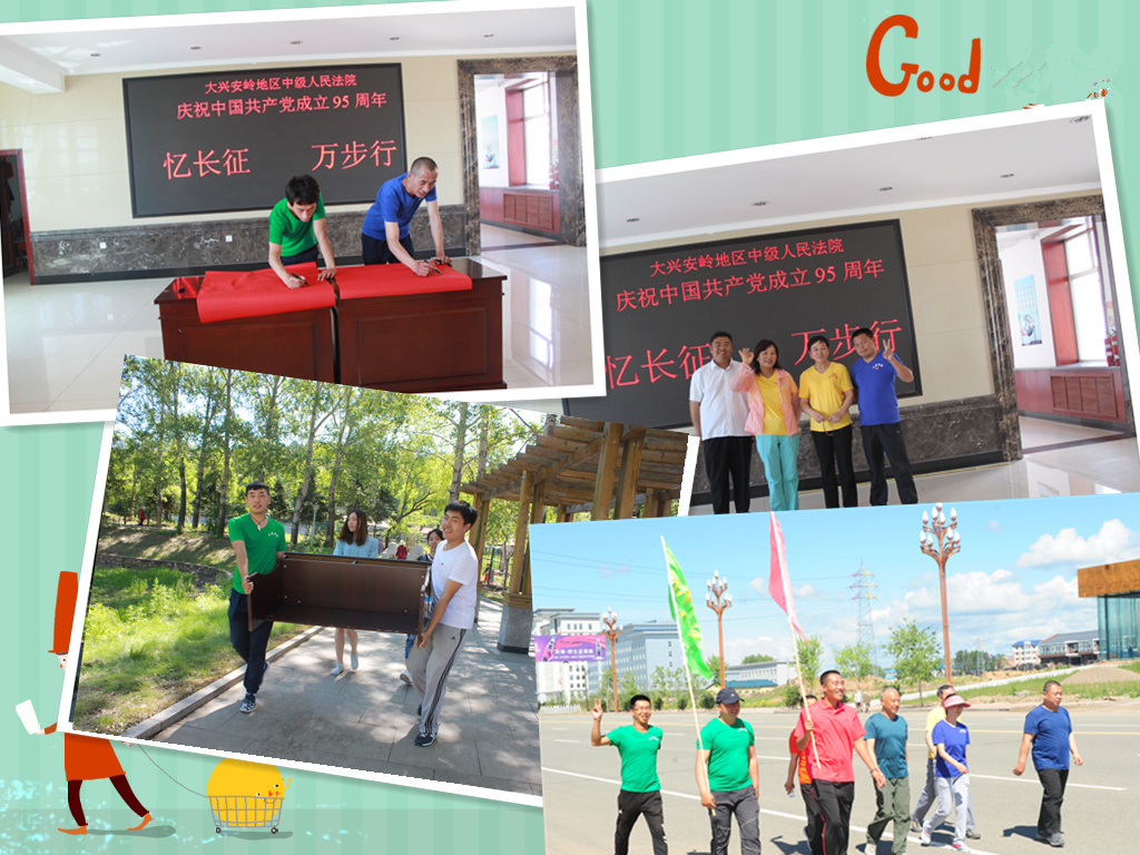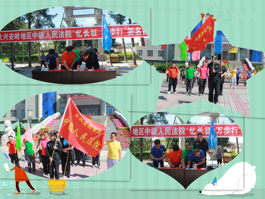 为庆祝建党95周年和长征胜利80周年,增强法院干警身体素质,加强基层党组织建设,提高工作效能,增进干警的沟通联系。大兴安岭地区中级人民法院开展“忆长征 万步行”徒步比赛活动。