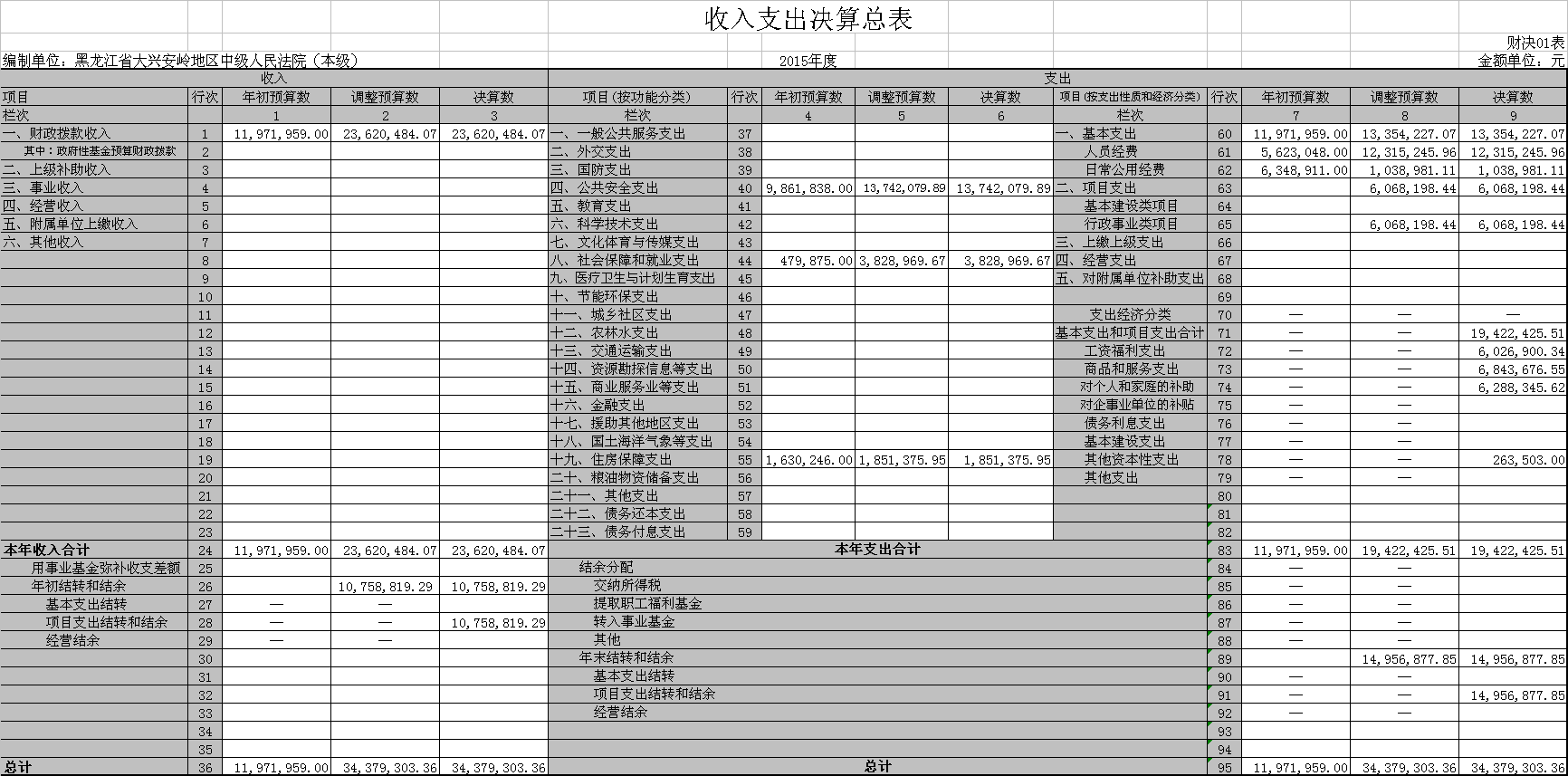 大兴安岭地区中级人民法院预决算公开补充资料六