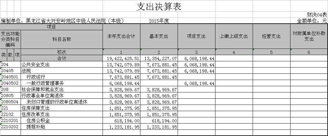 大兴安岭地区中级人民法院预决算公开补充资料十