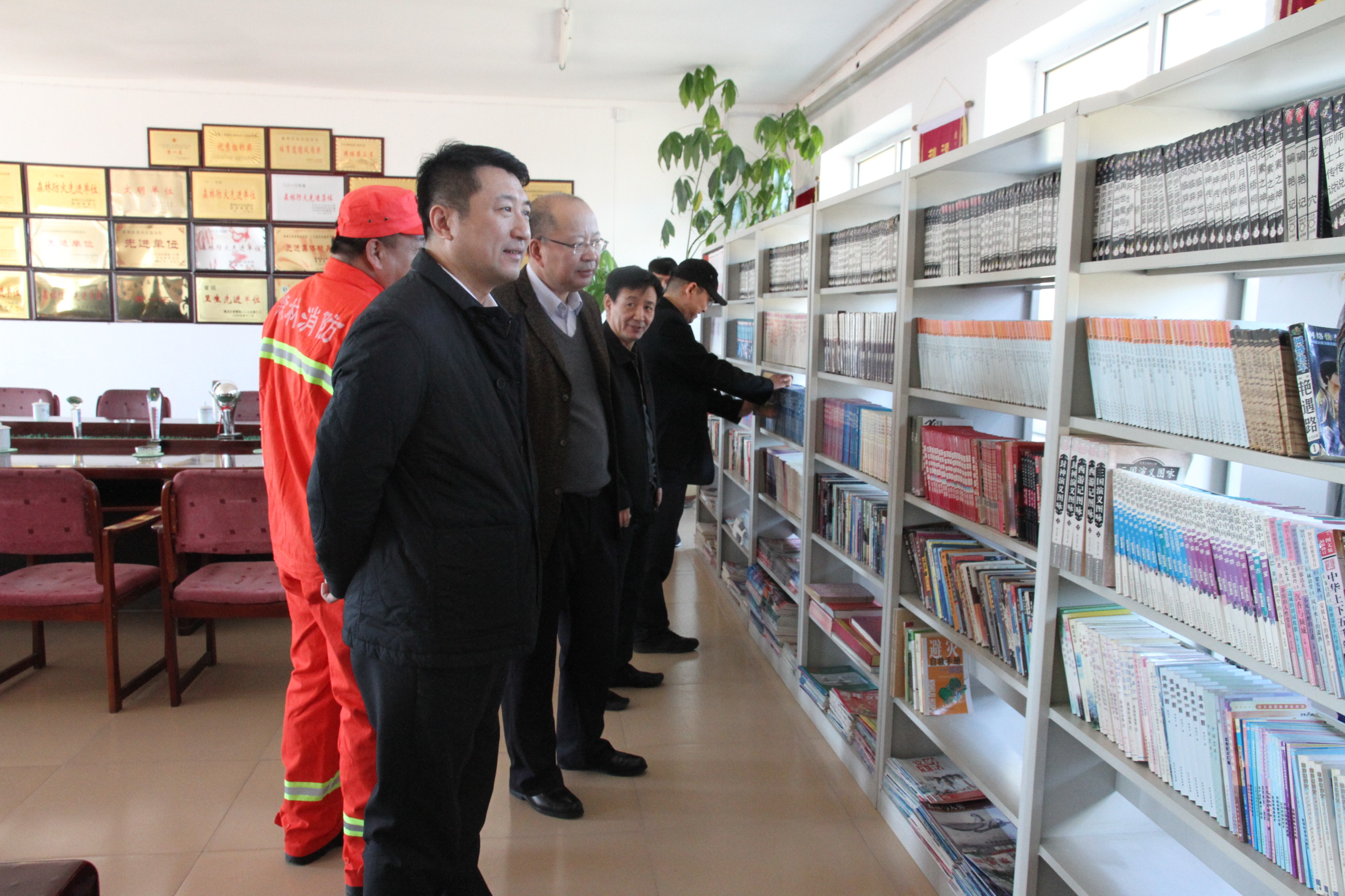 洛大雨院长到新林扑火大队文化室参观