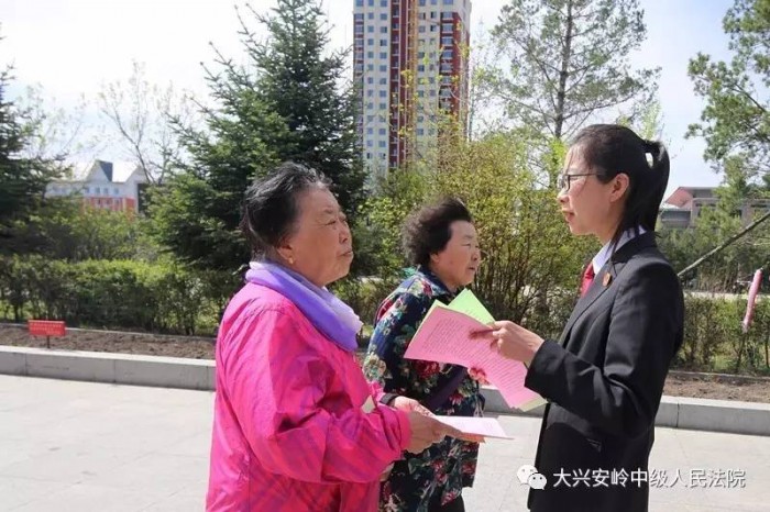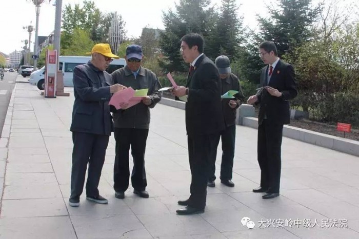 5月23日上午,大兴安岭地区中级人民法院干警到新世纪广场举行防范非法集资宣传活动。